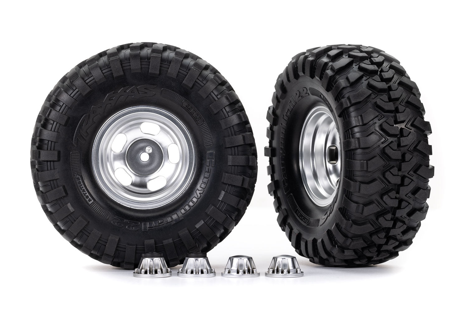 Tires & wheels, assembled, glued (2.2" satin chrome wheels, Canyon Trail 5.3 x 2.2" tires) (2)/ center caps (front (2), rear (2)) (requires #8255A extended thread stub axle)