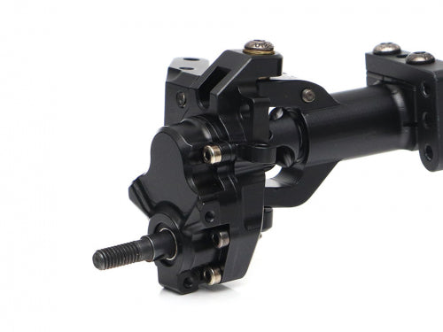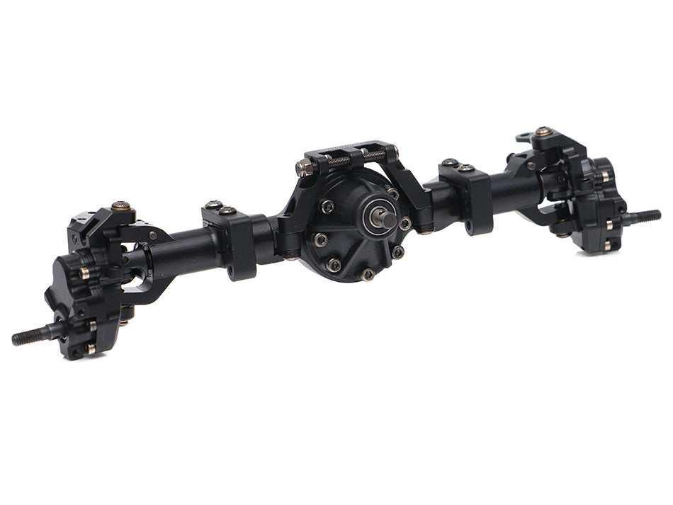 Packed with many desirable features; a heavy-weighted cast alloy axle housing for low CG, link setup or leaf spring over and under axle setup, chassis-mounted or servo-on-axle setup, front tie-rod or behind-the-axle steering setup, detachable aluminum CNC truss, adjustable caster angle, and more.