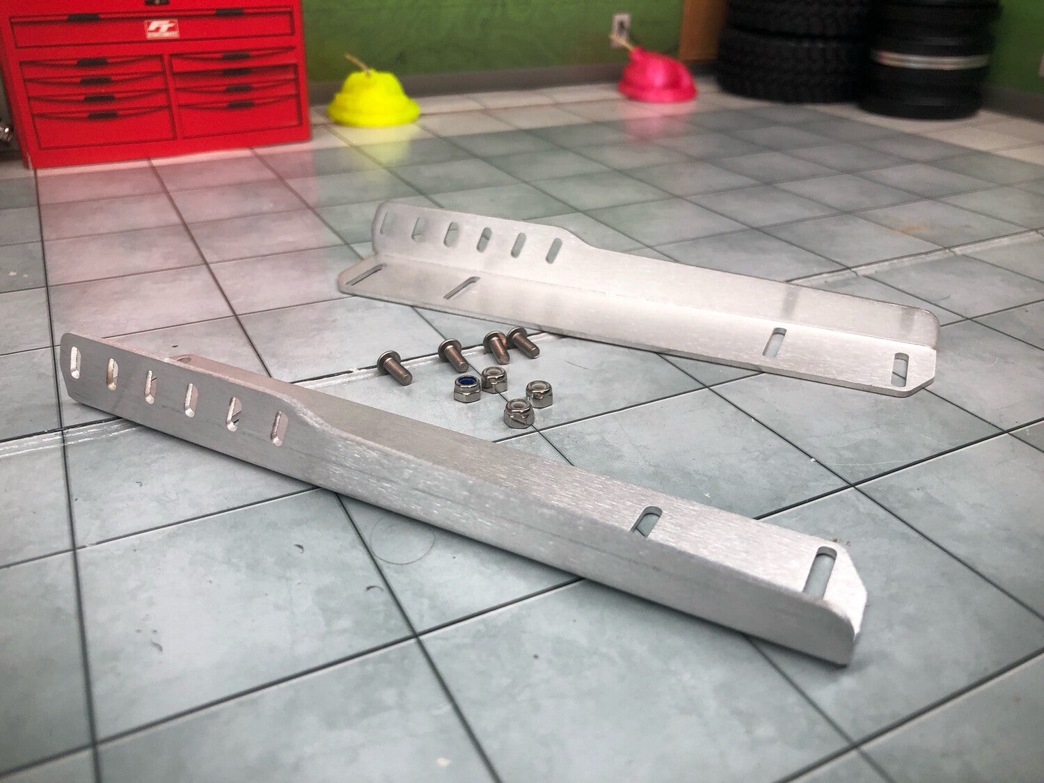 The slider extender takes you from 35mm wide to 50mm wide allowing for a wide range of body fitment. There are mounting holes on the edges to allow for extenders or other attachments to be added to the slider to mount our hard body or capture the edge of the body. You will receive, two slider extenders, 4 - M3x8mm BHS and 4 - M3 Nylock