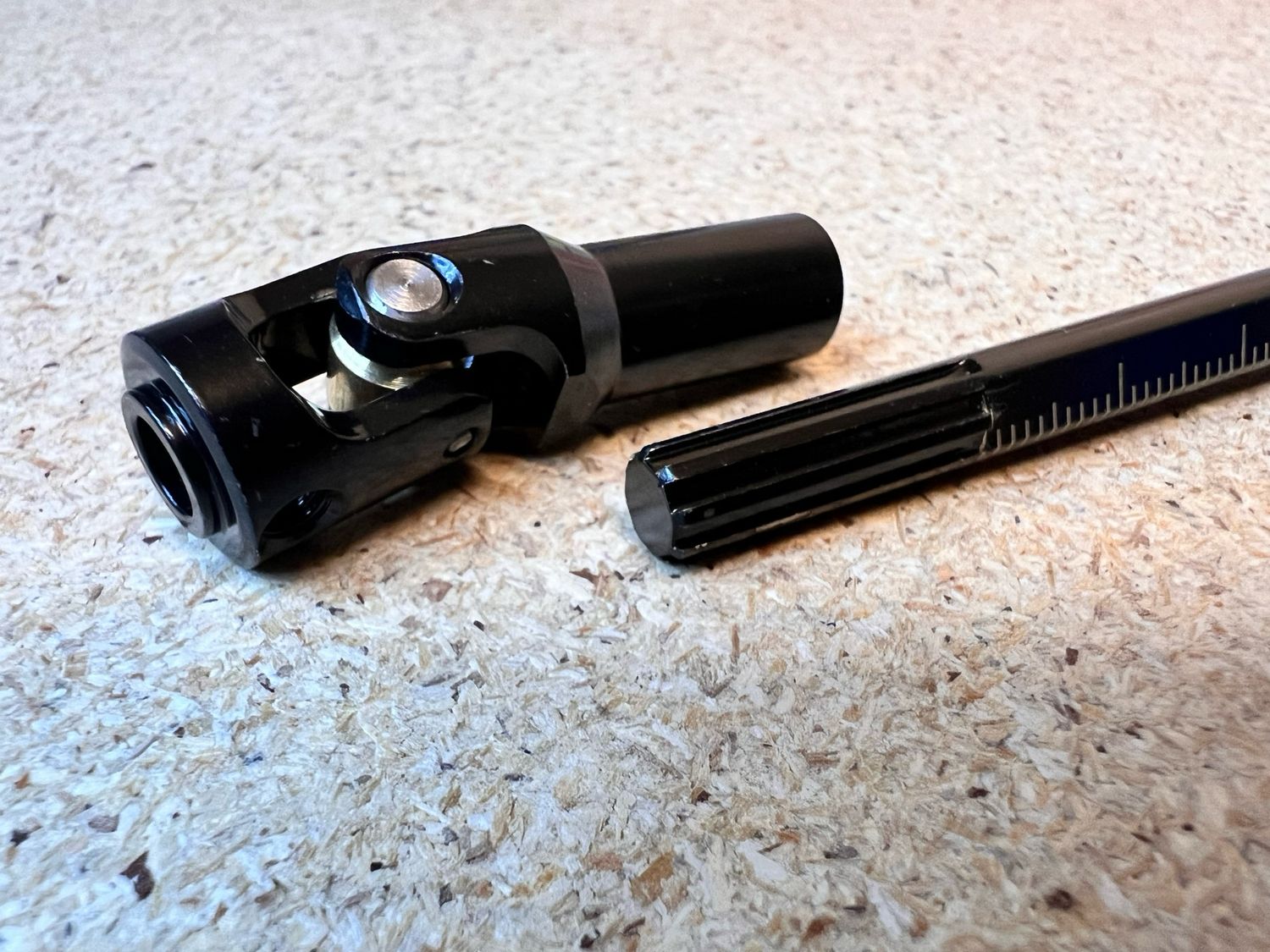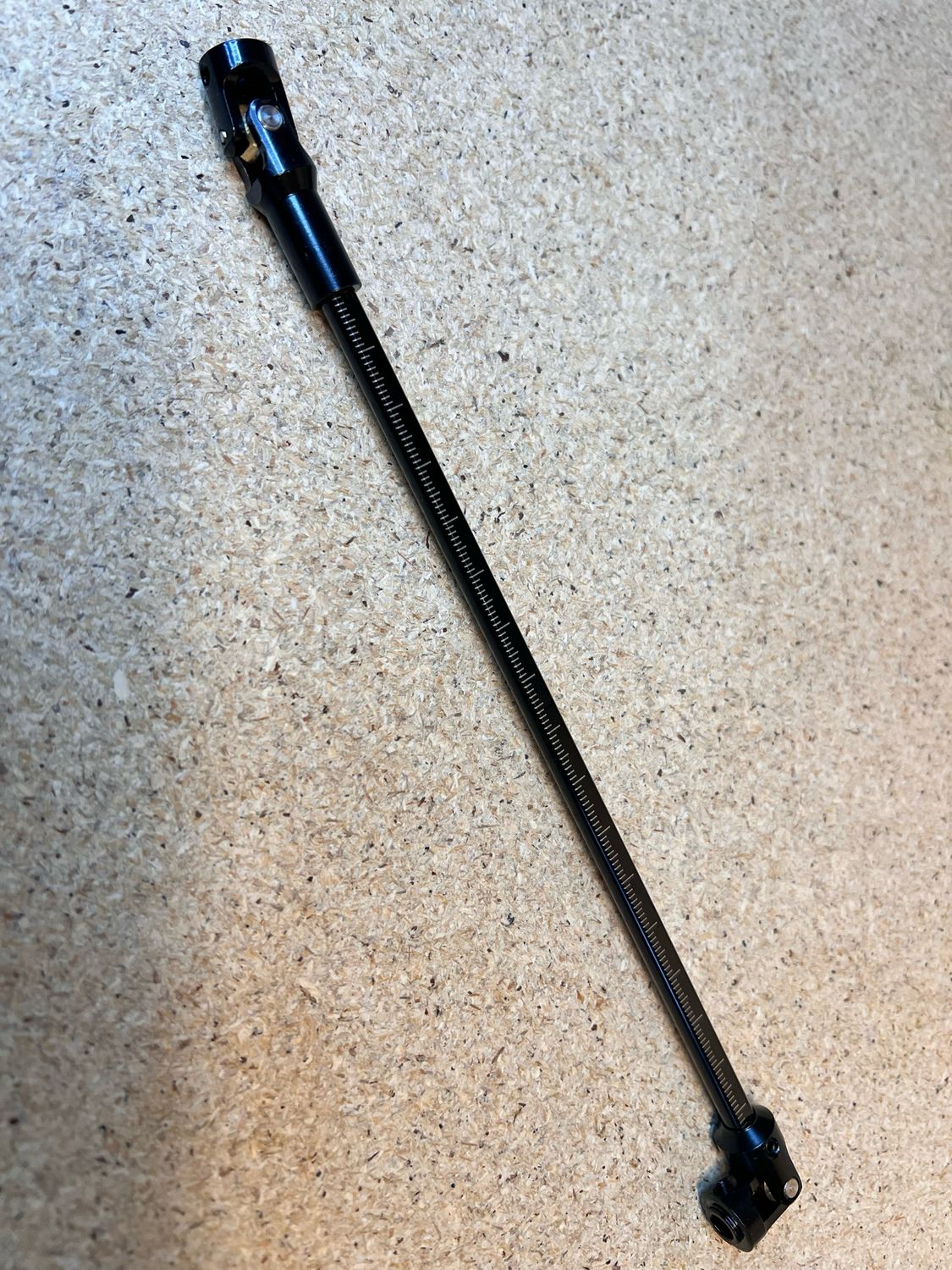 To use, remove the set screw from the short end, cut the shaft to the desired length and then set the screw again. Do not cut the splined end!