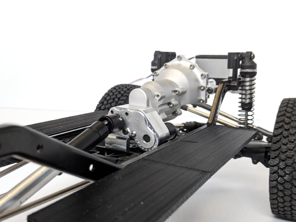 Among the all metal drivetrain in the GCM trans and Tcase, and all aluminum mounts, you'll also find ample room for even the largest 3D printed motor covers to complete your scale engine bay and keep all your suspension setups.