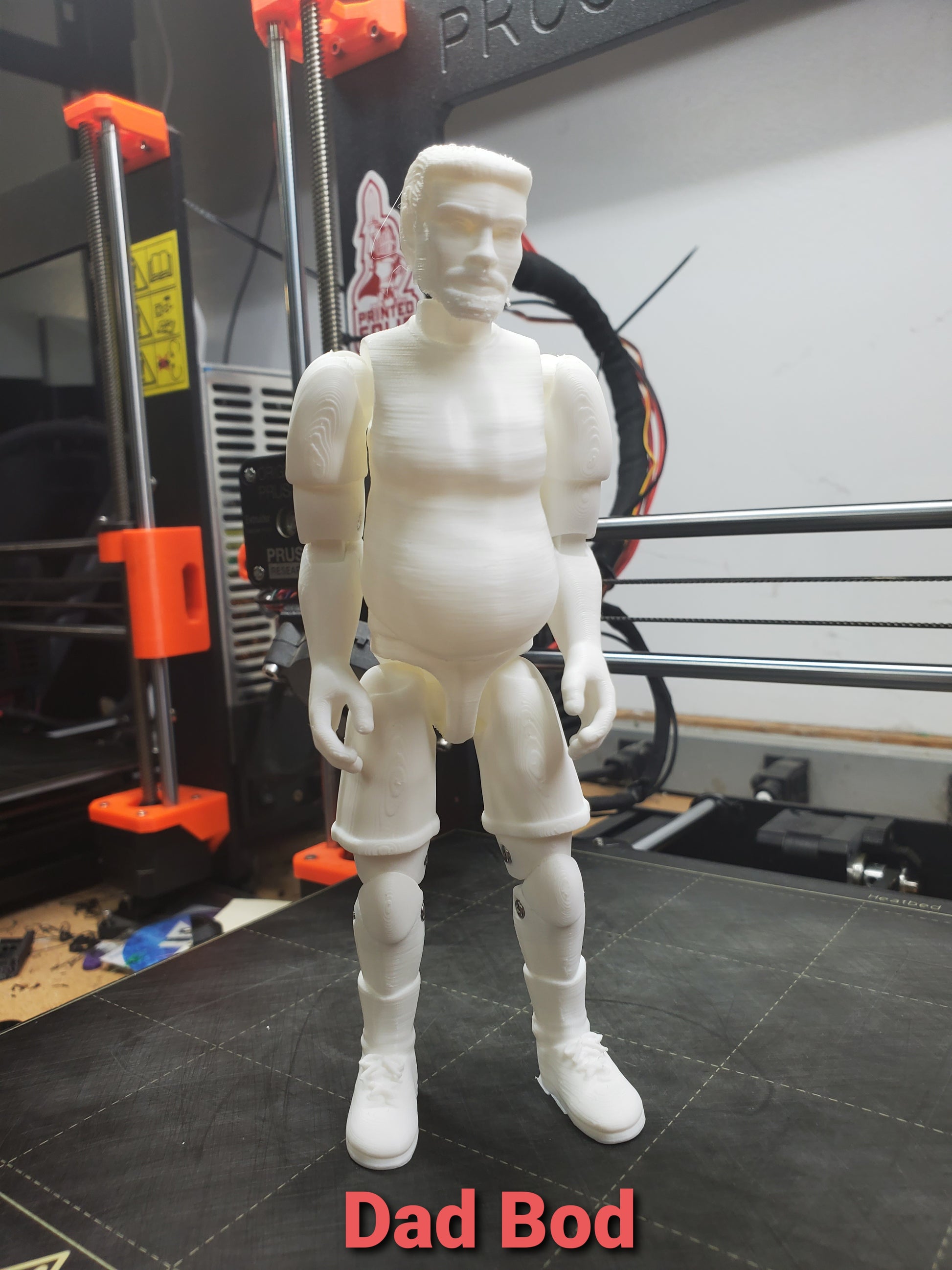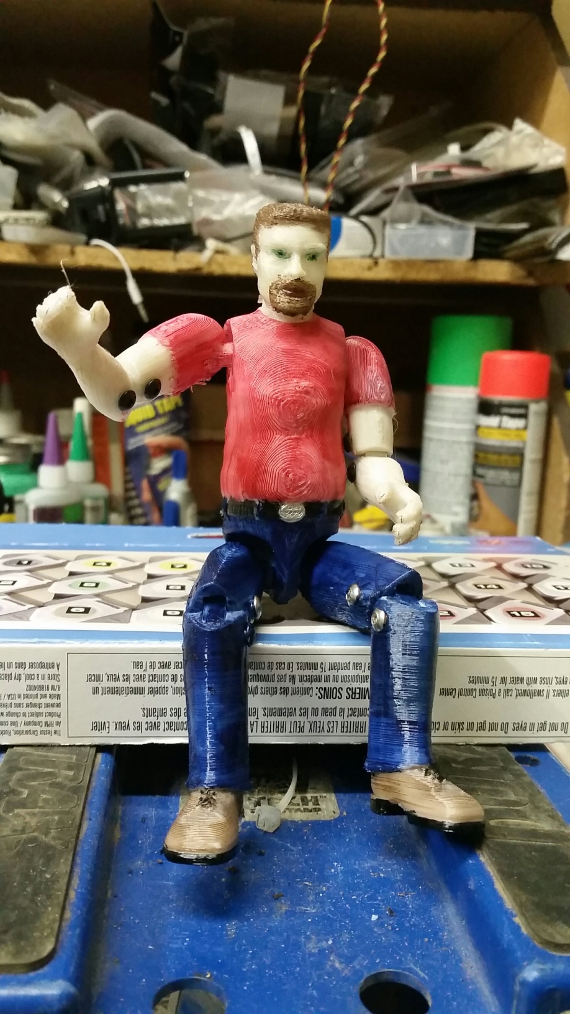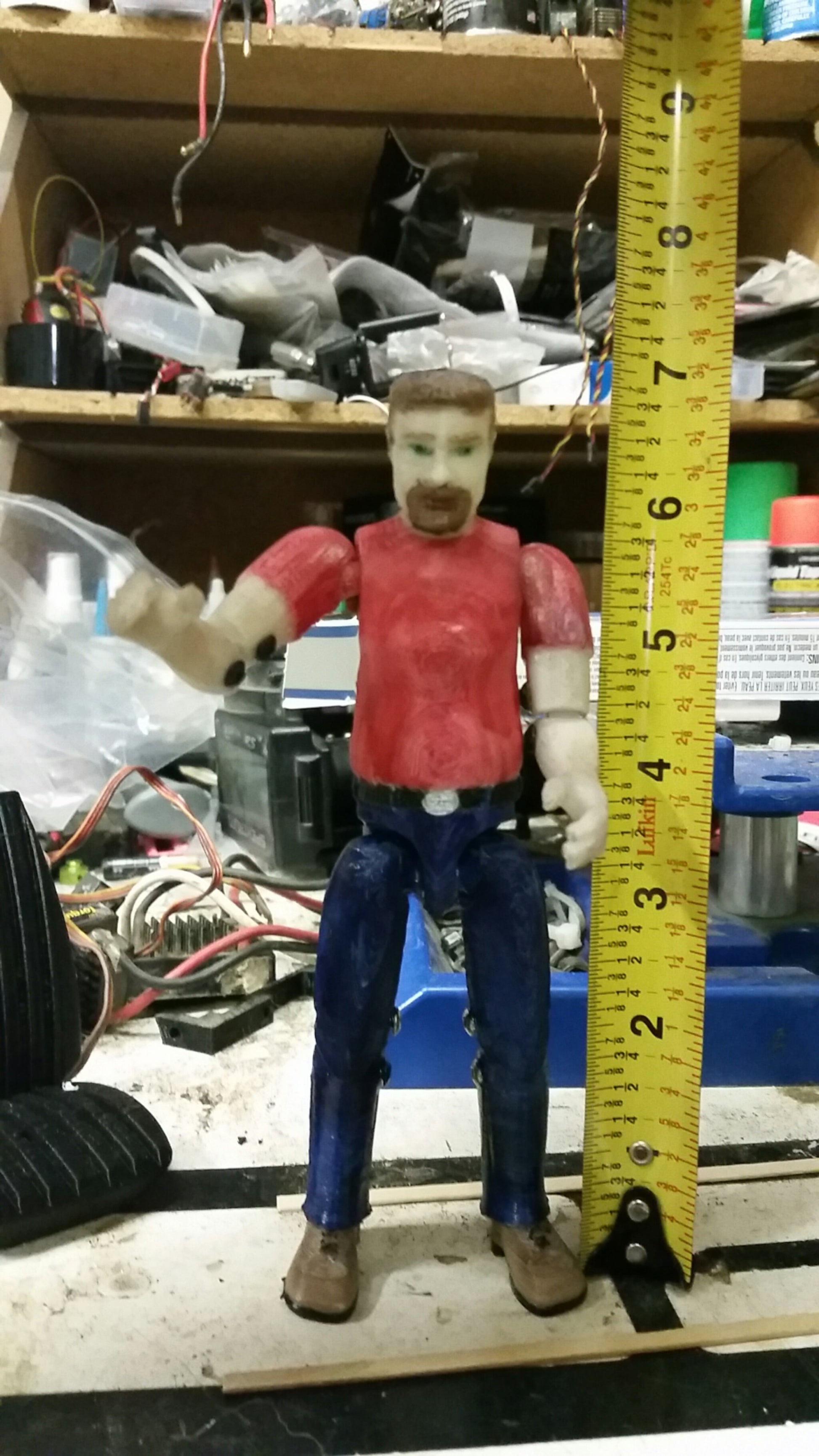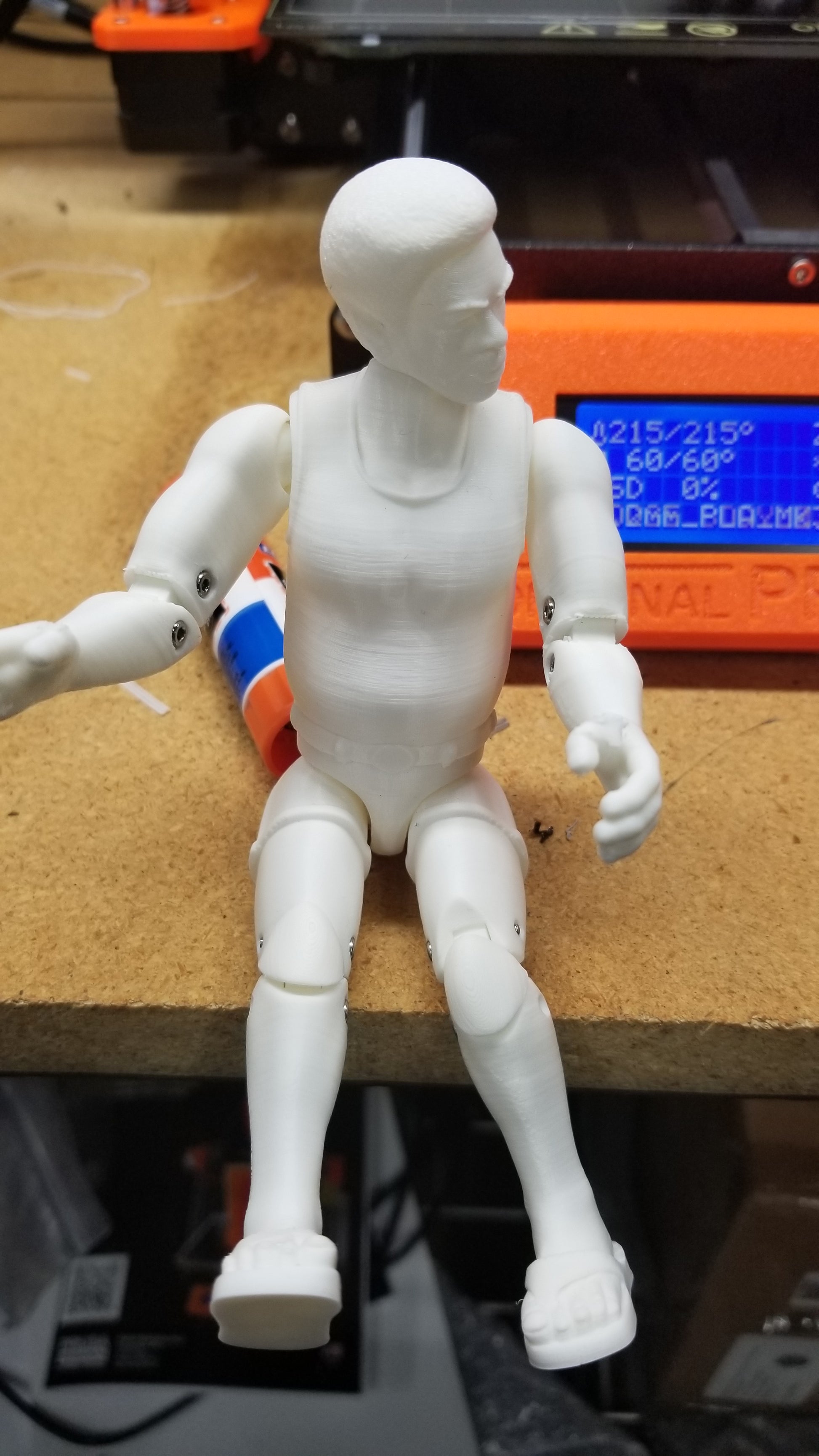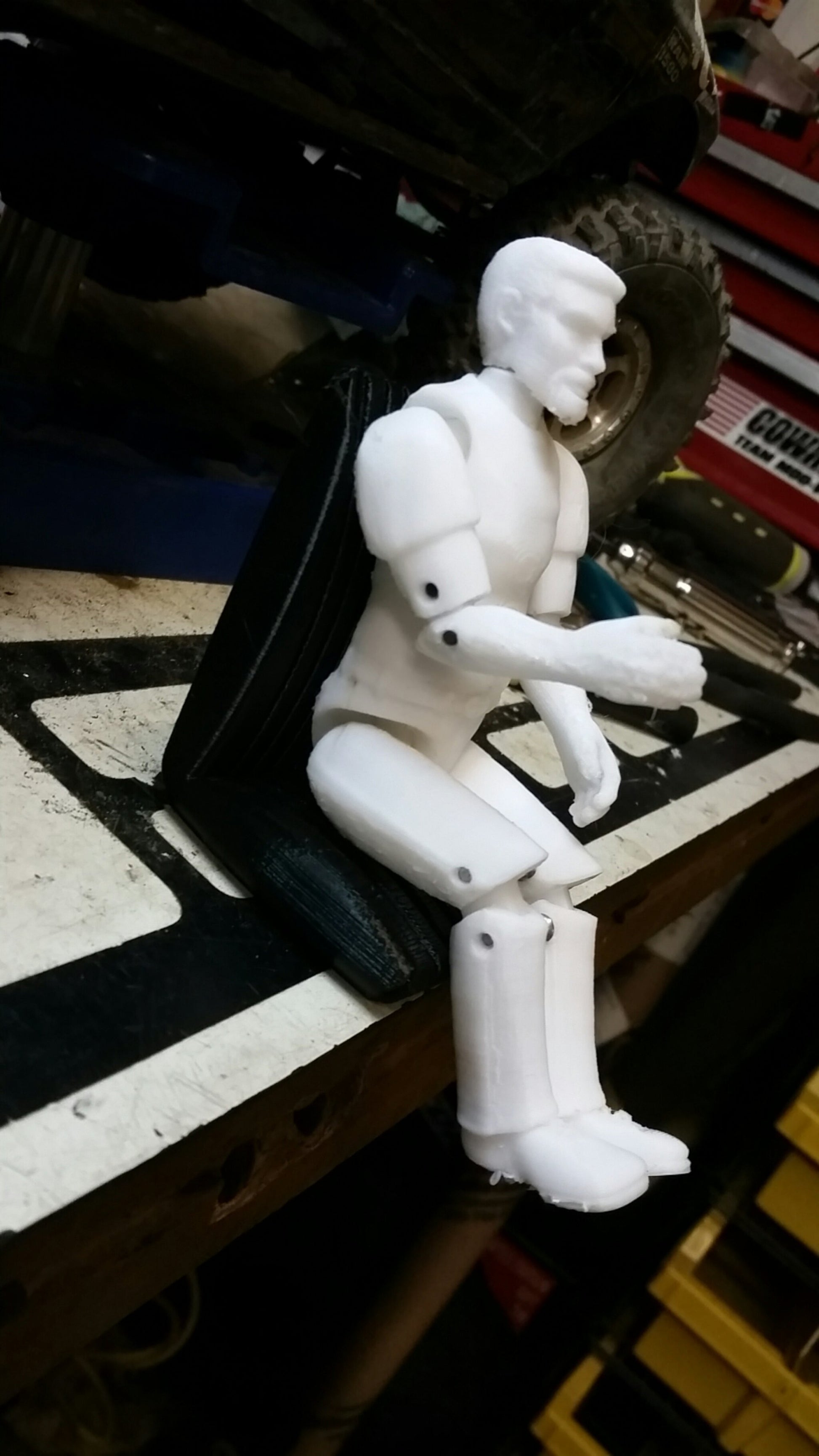 This is a light weight 3d printed figure that is position-able. The bend at the shoulders, elbows, hips, and knees, and the head can swivels. You can even order it with your own head for a setup fee.