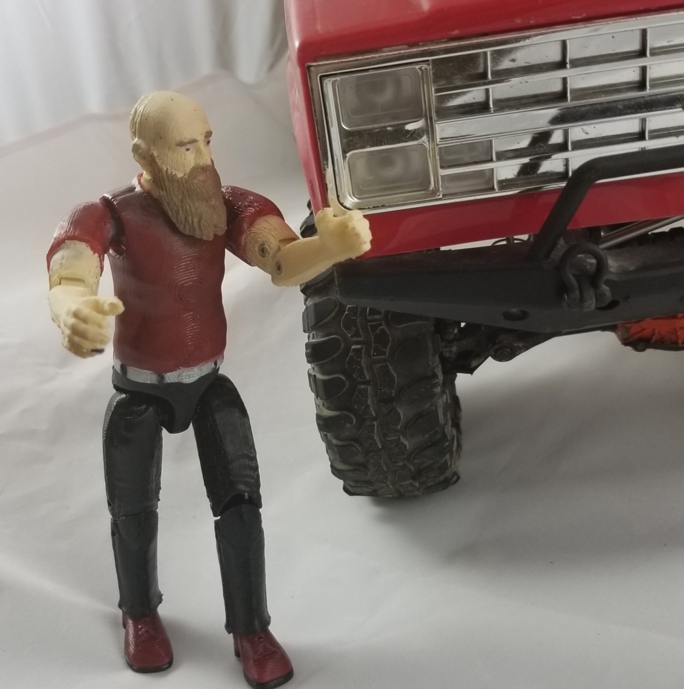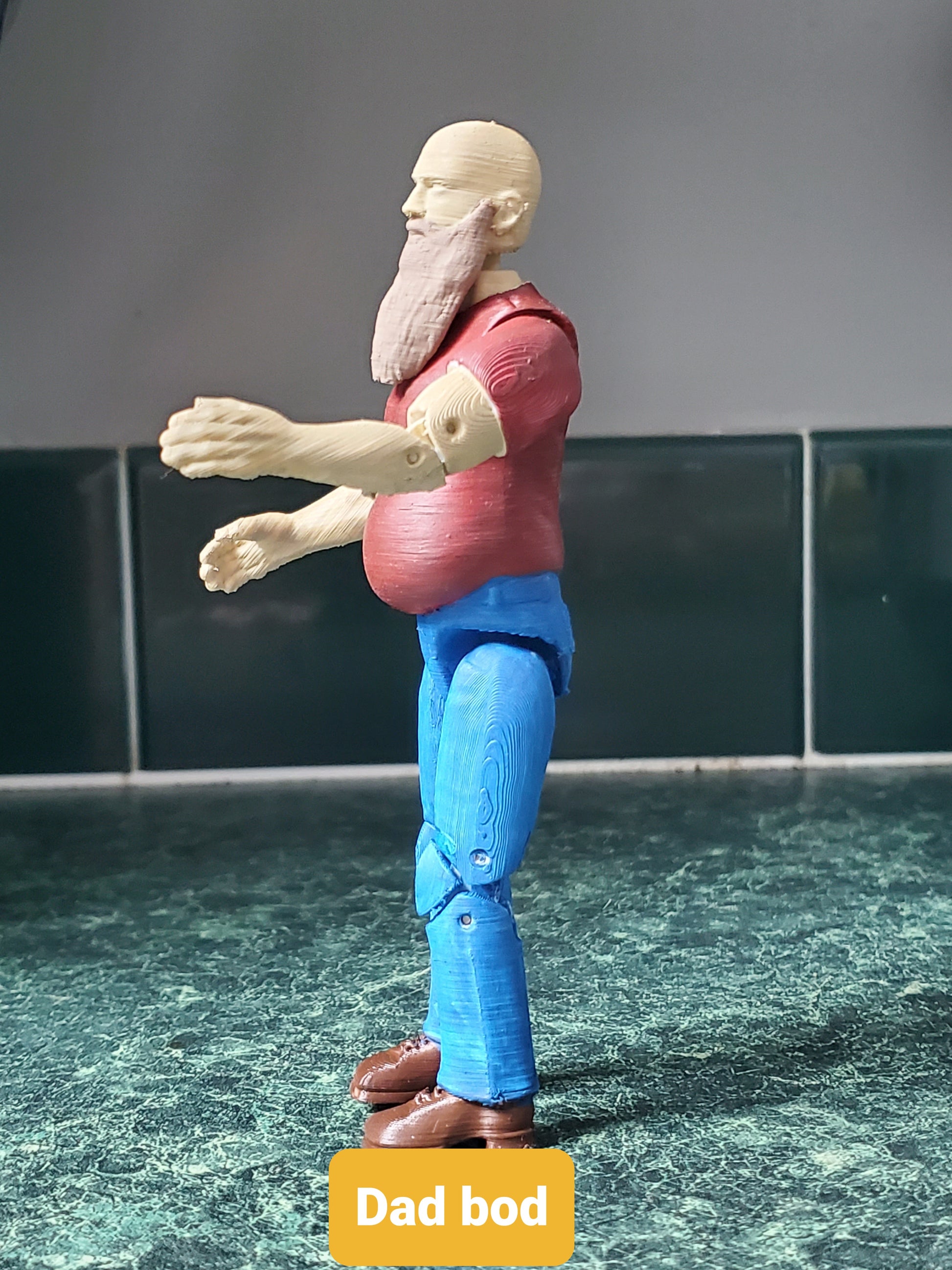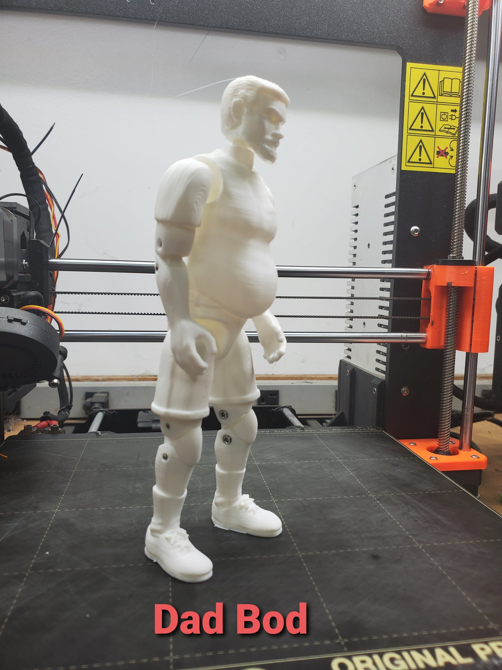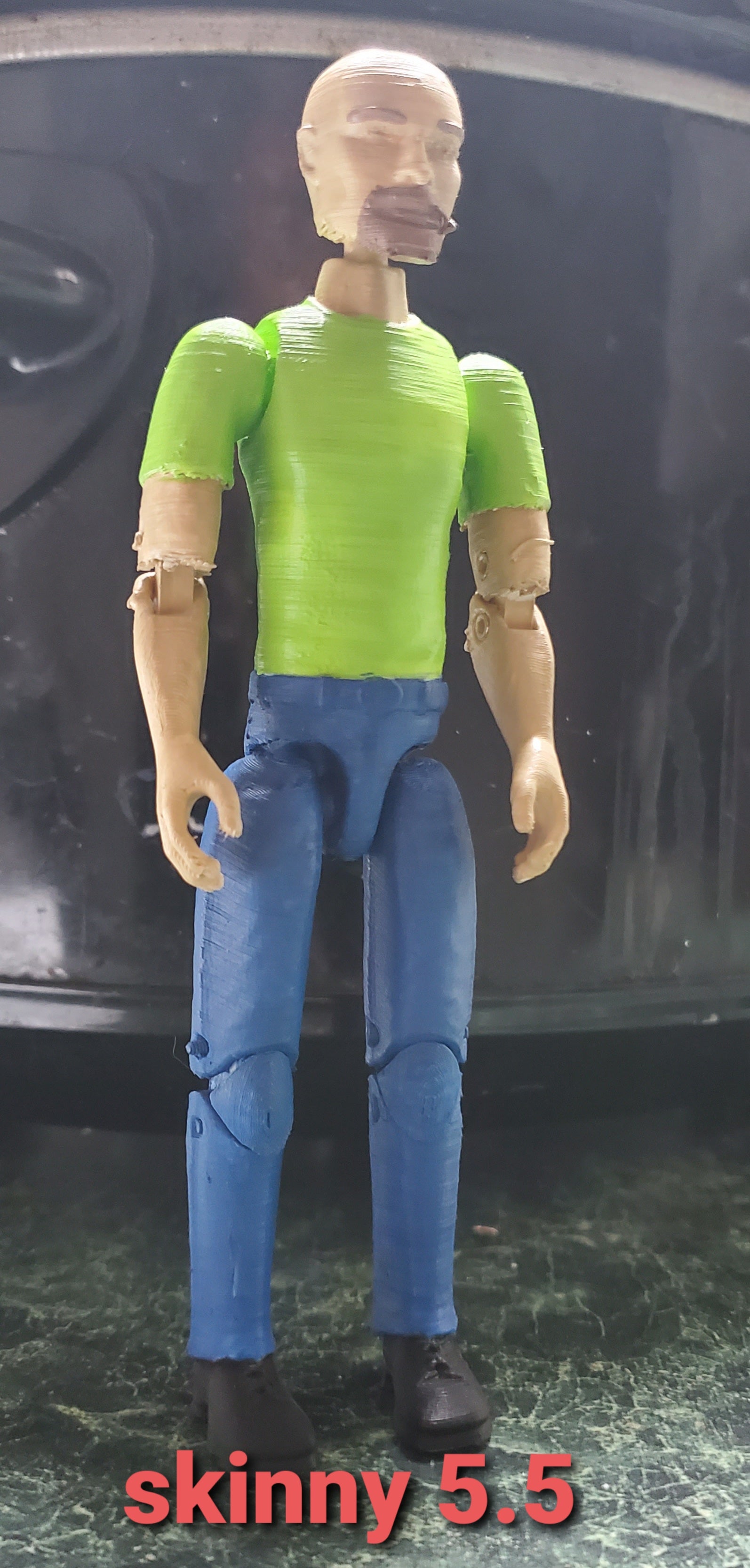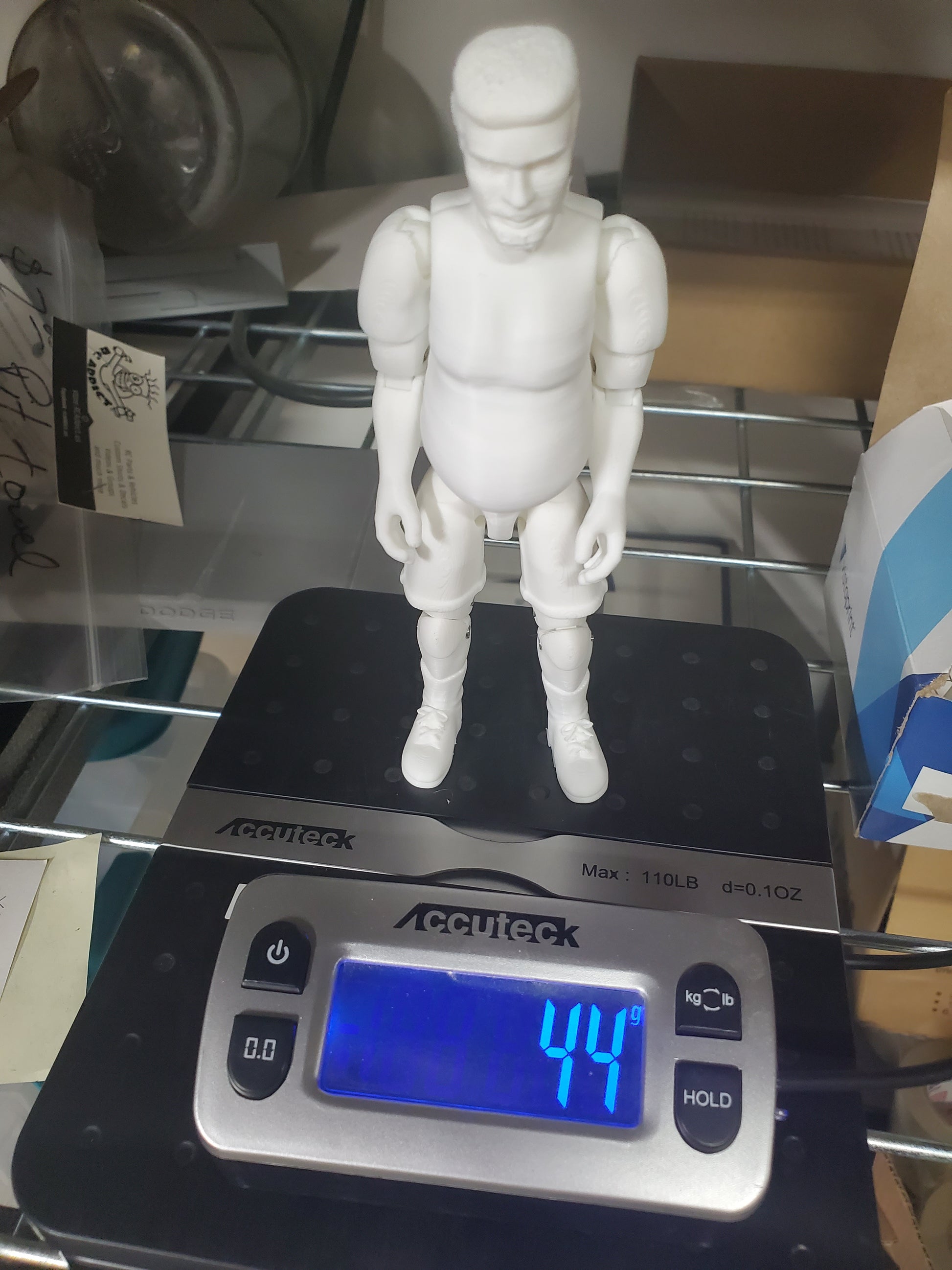 This is a light weight 3d printed figure that is position-able. The bend at the shoulders, elbows, hips, and knees, and the head can swivels. You can even order it with your own head for a setup fee.