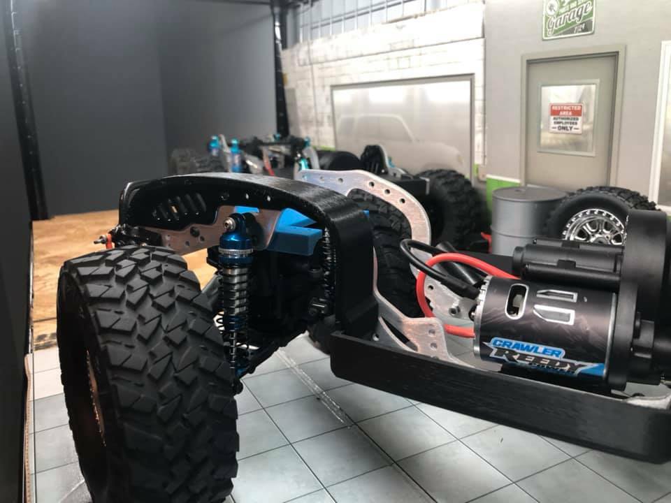 Bed Sides have shock standoffs designed into it. Element Shock caps and ball studs are and exact fit. The two holes furthest to the front may need slight trimming to clear the shock cap depending on axles side placement and offset. Recommended is 6mm spacer and bottom hole on the axle side.