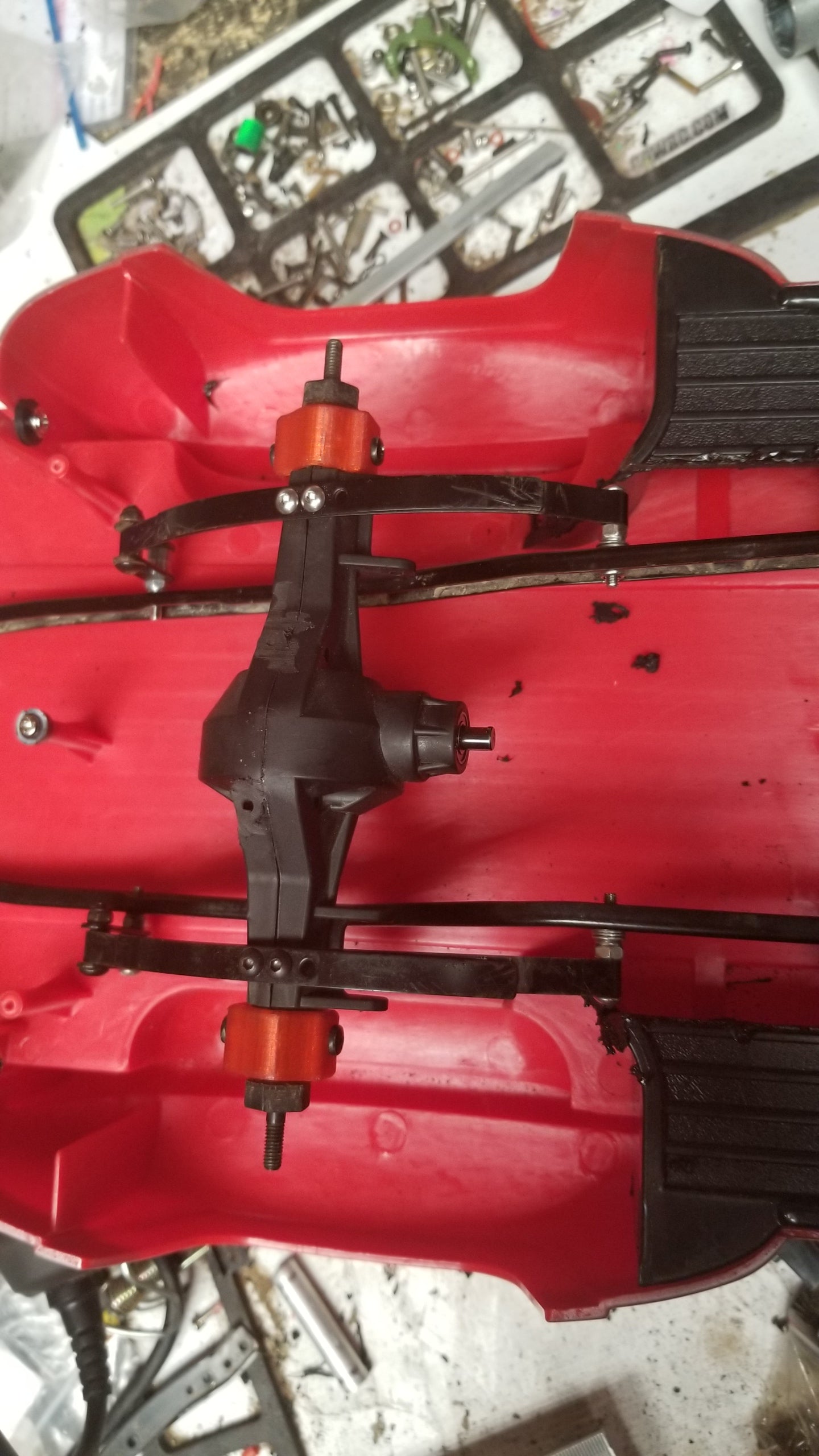 These will allow you narrow a stock scx10 axle down to 5 1/2 inch from 7 inches. this allows you use the axle for drag cars and dually rigs.