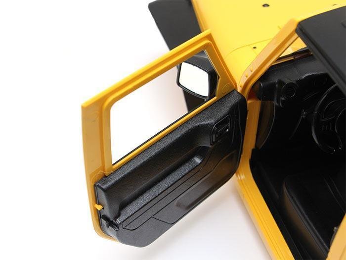 This new Rubicon 5-door version is a must have for scale freaks! Working front and rear doors. Made of ABS hard plastic. Comes with color molded plastics in red or yellow. Has an interior included.