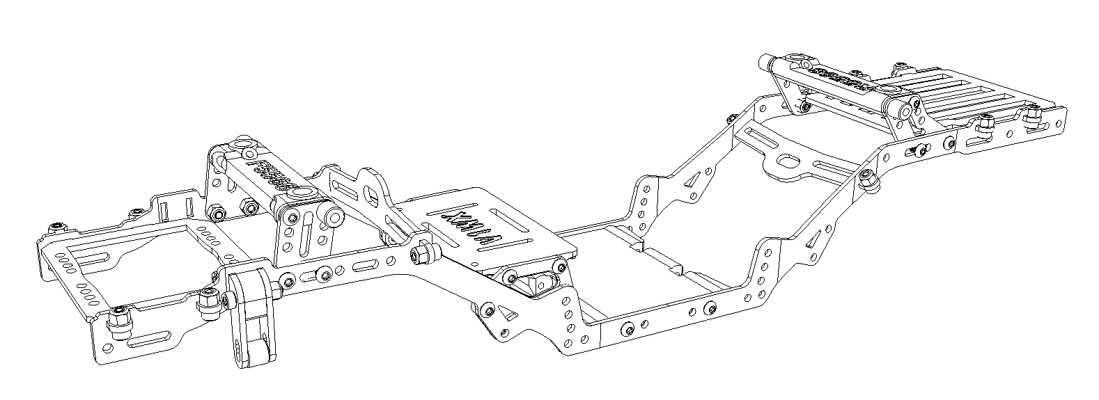Frame Assembly: The frame is designed to bend around the braces allowing the front and rear of the chassis to be narrower than the center optimizing the shock angles and tire clearance. If you are skilled with Welding or Brazing Aluminum, you can also Weld the cross Members and trim the screw tabs off.