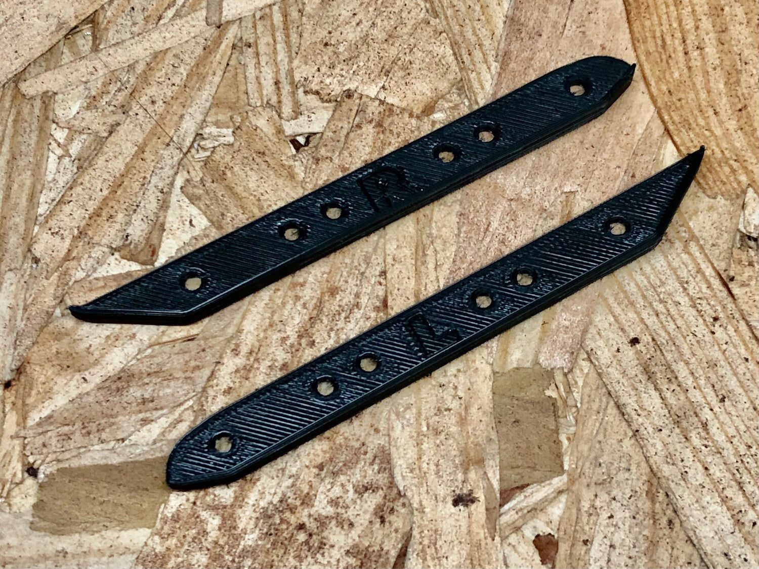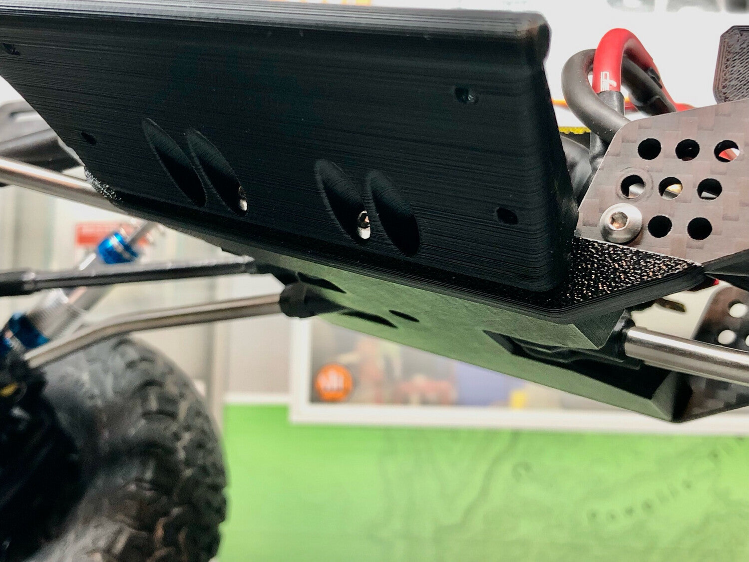 This Z-Pro Chassis Rail Protector is designed to keep abrasive rocks from wearing through the underside of your chassis rails in the belly area. This protectors will be printed from A95 TPU filament. It still slides well but will not fall apart on impact. The side of the protector is 2mm thick. This will spacer your sliders out from the chassis a total of 4mm. You will need 12mm or 14mm screws depending on what sliders you are using with the protector. The wear plate is 1.2mm thick making it ideal to print with your average printer.