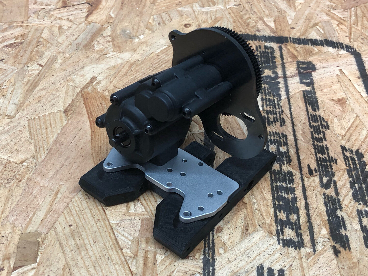 Motor Fitment with Transmissions: Capra (Up to Fusion or 550 Size Motor), Axial 3 Gear (540 Motors), Element OD (540 motors), Deluxe CB (Revolver Type Motors), TGH 2 Low (540 Motors), TRX4 (Fusion or 550 Sized Motor Dependent on Axle Used and Shock full Compression Length)