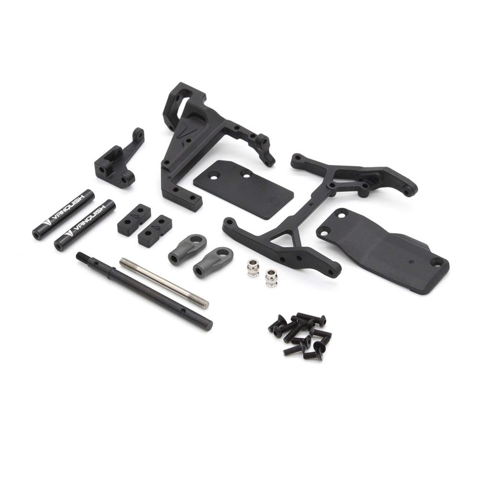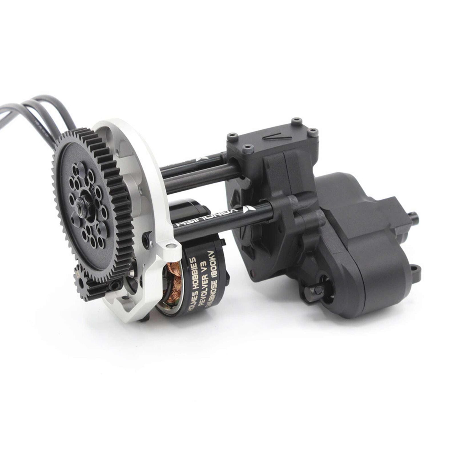 Requires the use of a motor 35mm in length or less (typically outrunners). Shortens the length of the VFD transmission with a new topshaft and machined aluminum posts. Includes updated chassis bracing, behind the axle servo relocation mount and shortened VRD skid plate extension for the F10 axle. A lightweight outrunner motor and lowered servo position significantly lowers the center of gravity, increasing the performance of the VRD Carbon.